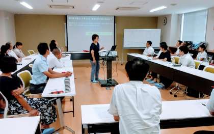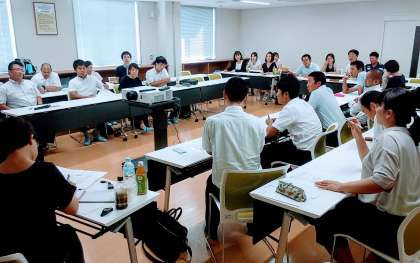 1学期に実施した授業のビデオを視聴しながら、2学期の授業づくりについて協議を行いました。それを受けて、講師としてお招きした同志社女子大学の吉永紀子先生からご指導をいただき、たいへん有意義な時間を過ごすことができました。