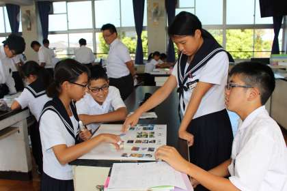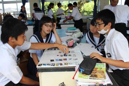 2年生 理科の授業風景です。 様々な生き物を、基準を決めて分類します。