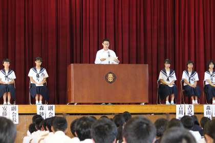 生徒会役員候補者立会演説会 公開日 2018/09/28 更新日 2018/09/28 生徒会 後期生徒会役員を決めるため、立候補者の立ち会い演説会が行われました。 一人一人が南部中をよくするための展望をしっかりともち、それを堂々と語ってくれました。
