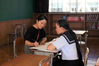 日本語教室の授業風景です。 それぞれのペースで数学の問題に向かっています。