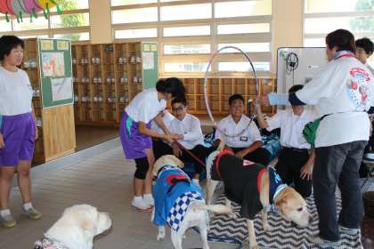 セラピー・ドッグ4頭が来てくれました。 みんなでたっぷり癒やされました。