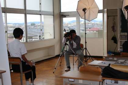 卒業アルバムの「個人写真」を撮影しました。うまく笑顔で映れたかな?