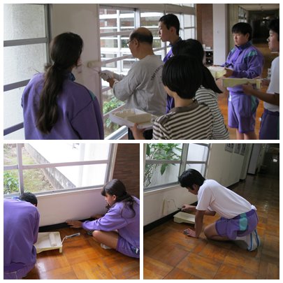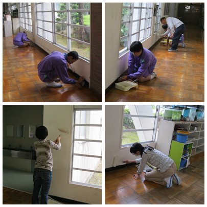 2年生の有志の皆さんが職員室前廊下の壁を塗り直してくれています。