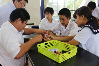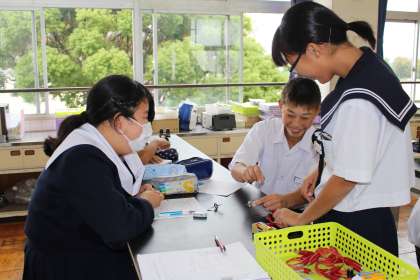 授業風景 2年生 理科 公開日 2018/10/15 更新日 2018/10/15 授業の様子 2年生 理科の授業風景です。 回路に流れる電流の強さはどのようにしたら計れるか? 知恵を寄せ合って考えます。