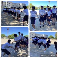 体育祭の練習です。障害物リレーや綱引き、台風の目など楽しそうに取り組んでいまし...