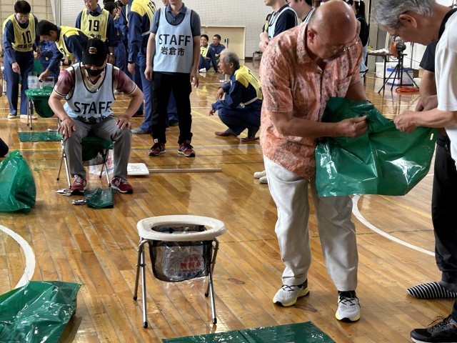 ダンボールベッドの組み立てや、簡易トイレの使い方などを、体験して学びました。