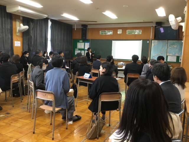 県内はもとより、大阪府や岐阜県など県外からも多くの小中学校教員が参加し、熱心に授業参観やその後の協議に参加しました。